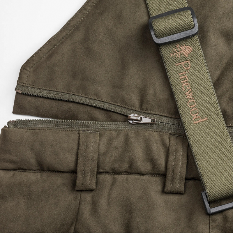 Uživajte u hladnim zimskim danima s lovačkim hlačama Pinewood Småland/Abisko 2.0. Podstavljene za dodatnu udobnost i toplinu. Membrana otporna na vjetar i vodu. Odvojive naramenice.
